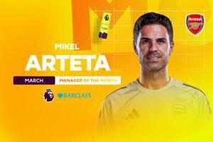 體育資訊04月11日訊 英超第32輪,阿森納主場1-2不敵伯恩茅斯。而在4月3日,阿爾特塔剛剛收獲了英超3月最佳主帥,擊敗了埃迪·豪、赫爾澤勒、勒布里斯和莫耶斯。