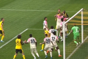 第32分鐘,多特后場傳球失誤,科法內打門角度太正被科貝爾沒收。↓