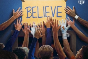 巴薩曬海報:致敬美劇《足球教練》,球員將手覆在“相信”標語上