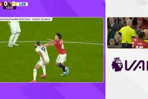 裁判通告:“經(jīng)回看確認(rèn),曼聯(lián)6號球員存在拉扯對方頭發(fā)的暴力行為,最終判罰為紅牌。”
