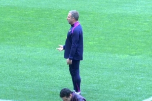 弗里克似乎對(duì)球場(chǎng)的草皮狀況并不滿意,他蹲下身,觸摸大都會(huì)球場(chǎng)的草皮,但相關(guān)人士表示,球場(chǎng)的草皮符合歐足聯(lián)要求。