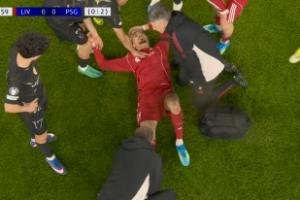 體育資訊04月15日訊 歐冠8強次回合利物浦vs巴黎,埃基蒂克第29分鐘無對抗受傷,被擔架抬出場。薩拉赫登場!