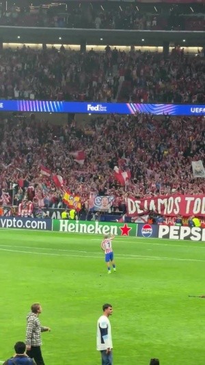 體育資訊04月15日訊 馬競1-2、總比分3-2淘汰巴薩晉級四強,格列茲曼賽后獨自一人與馬競球迷激情慶祝。