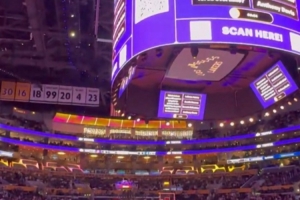 當現場DJ播報阿德巴約得到83分時,湖人主場球迷發出陣陣噓聲。