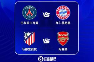 半決賽對(duì)陣隨之敲定,巴黎將先主后客迎戰(zhàn)拜仁,馬競(jìng)則先主后客對(duì)決阿森納。兩回合角逐將于4月29日-30日及5月6日-7日凌晨展開。