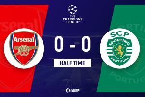 半場-阿森納暫0-0葡萄牙體育 雙方半場僅1射正 卡塔莫中柱