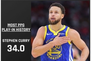 在NBA歷史上,至少打過2次附加賽的球員里,庫里場(chǎng)均34分是歷史最高的。