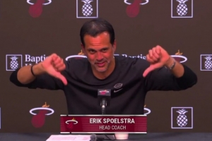 賽后,熱火主教練斯波爾斯特拉接受采訪時,記者表示:“接下來我要問一個跟阿德巴約無關的問題?!?/p>