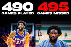 美媒ClutchPoints表示,恩比德NBA生涯至今缺席的場次比出戰(zhàn)的場次還多:
