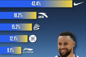 本賽季,庫里有4成的場次穿的是耐克球鞋,超過2成穿的是李寧(包括韋德系列),接近2成穿的是安踏。