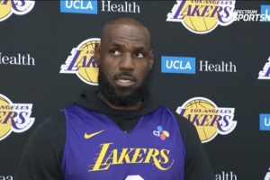 體育資訊4月17日訊 今日,湖人球星詹姆斯在訓練后接受了采訪。