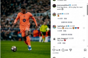 此役拉什福德為巴薩替補出場,賽后他在社交媒體上曬出比賽照片,配文:“首回合結束,下周決勝負。”