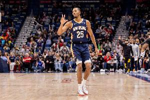 首節比賽,鵜鶘球員墨菲表現出色,進攻端手感火熱前四投全中,打滿12分鐘,投籃5中4,三分球4中3,罰球3中3,高效拿下14分2籃板的數據。