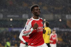 體育資訊3月5日訊 本賽季英超第29輪,阿森納客戰布萊頓,薩卡在比賽上半場破門。
