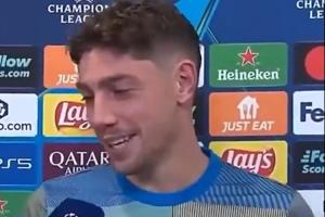 賽后發生了有趣的一幕,記者對巴爾韋德說道:我必須給你(展示)這個虛擬的東西,因為我沒有金球獎在這,(向鏡頭展示手機屏幕金球獎圖),這是你的。