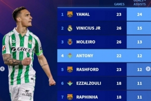 體育資訊3月12日訊 德轉(zhuǎn)盤點了本賽季西甲邊鋒位置球員在聯(lián)賽中參與進球榜,其中亞馬爾居首,具體榜單如下(進球+助攻):