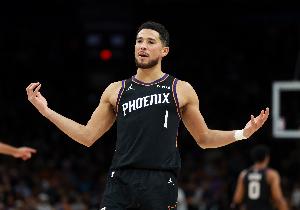 上半場,太陽后衛布克穩定輸出,打了17分鐘12投6中,三分3中2、罰球4中3拿到17分3籃板,正負值+1。