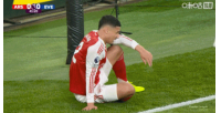 比賽第42分鐘,加納開出埃弗頓的前場定位球,拉亞出擊時(shí)不慎給了薩利巴臉部一肘!后者一度倒地不起。