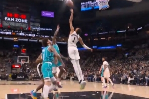 GIF-文班大帽迪亞巴特勾手,又干擾造成黃蜂24秒