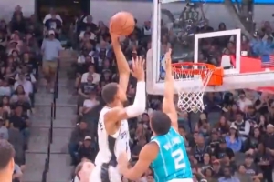 GIF-文班單打格威,轉身輕松左手隔扣