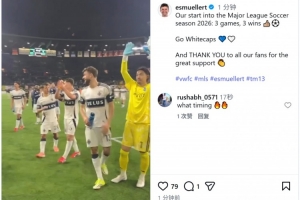 溫哥華白浪本賽季美職聯開局取得3連勝,穆勒社媒慶祝勝利:“我們2026賽季的美職聯開局——3戰3勝,加油溫哥華白浪!感謝所有球迷的大力支持。”