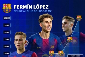 體育資訊3月17日訊 德國轉會市場更新社媒動態,曬出了巴薩中場費爾明身價變化圖。