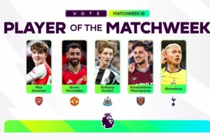 體育資訊3月17日訊 英超官方公布了本輪的最佳候選名單,由B費、道曼領銜。